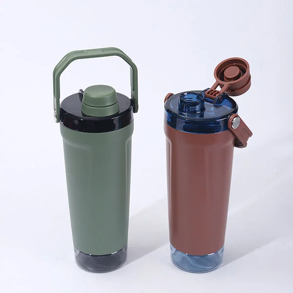 Dno Shakers Bottle je navrženo s úložným prostorem vyrobeným z PC materiálu, který pojme denní proteinový prášek, čajové lístky, léky atd. Tento nepropustný design je navržen tak, aby se oddělil od nerezové oceli na dně
