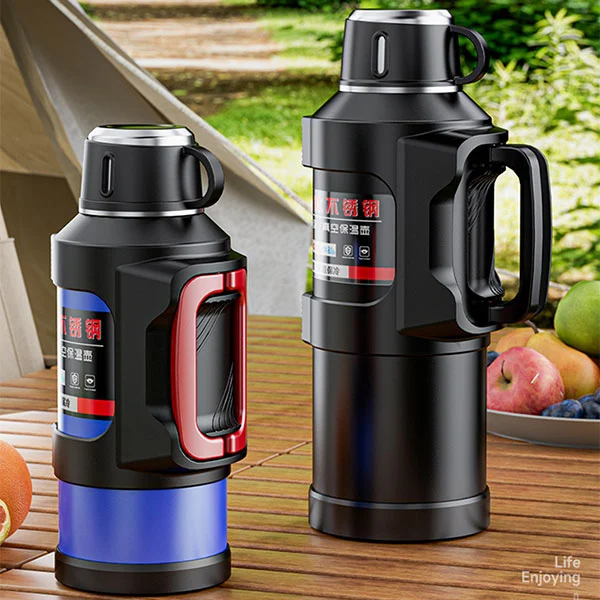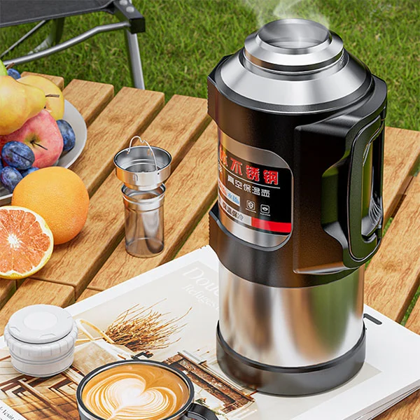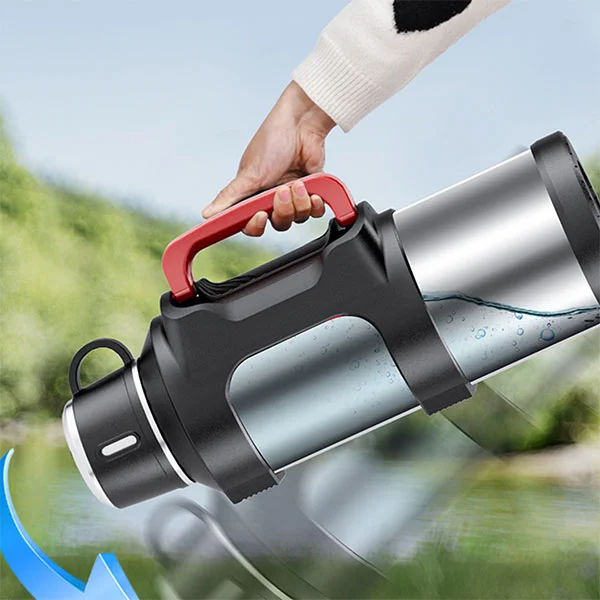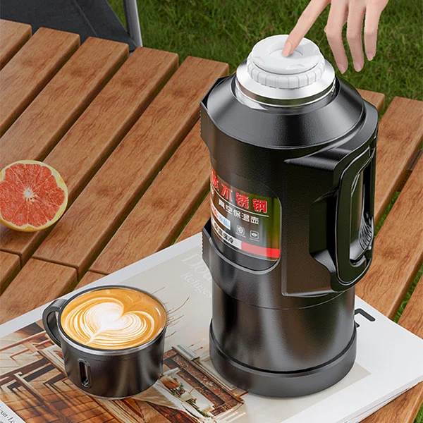 Tato termosková baňka je vyrobena z nerezové oceli s vysokou kvalitou 316, která je čistá, šetrná k životnímu prostředí a méně pravděpodobné, že si zachová bakterie. Stisknutím uvolníte vodu. Víko lze také použít jako malý šálek, který je pohodlný a jednoduchý. Vyhýbá se problémům s pitnou vodou přímo z velkých kbelíků nebo hrnců s nadváhou. Po použití může být přímo umístěna na víko, aniž by zabíral příliš mnoho místa.