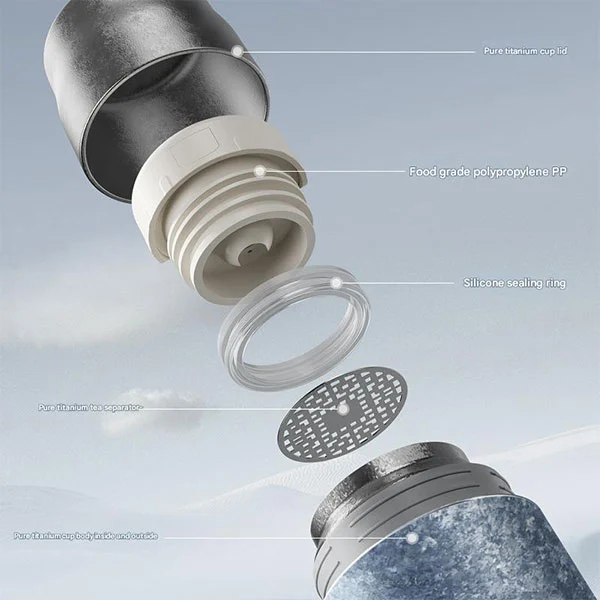 Obal titanové láhve je vybaven nepropustným kelímkem, který lze také přizpůsobit podle různých scénářů použití