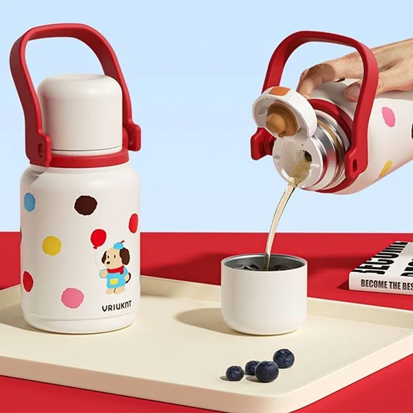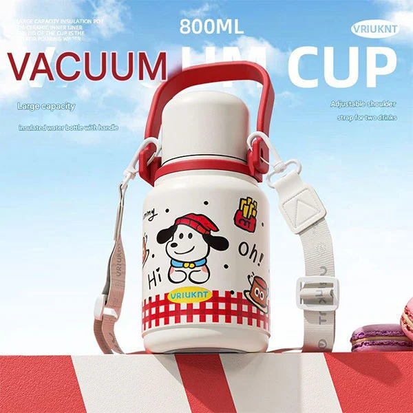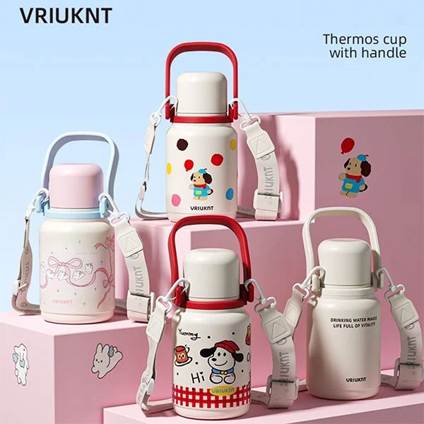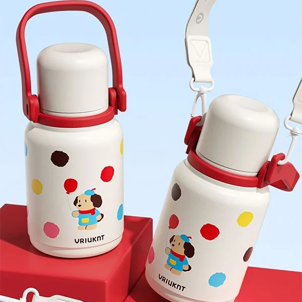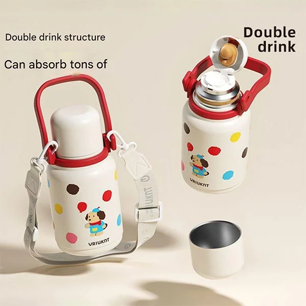 Izolovanou termosku lze použít jako nezbytnou láhev na vodu pro děti do školy nebo na cesty, což je pro děti velmi vhodné, protože jejich ruce jsou malé a popruhy jim mohou uvolnit ruce
