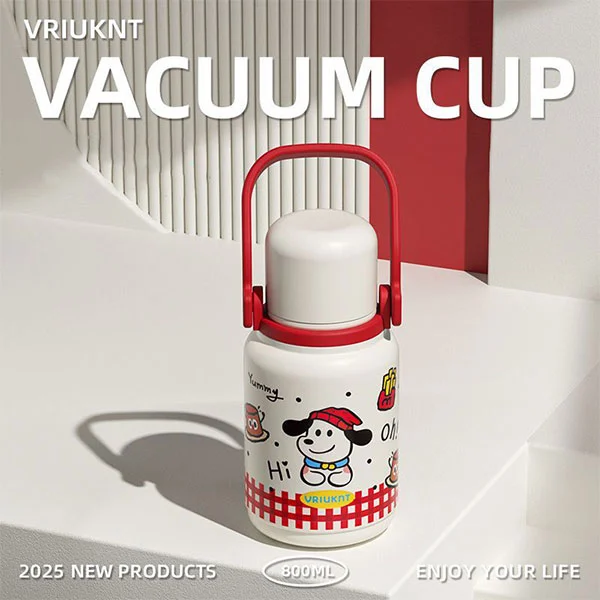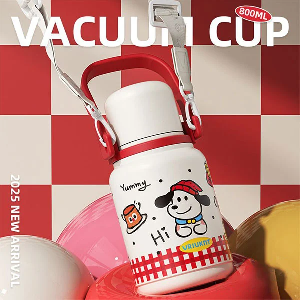 Vakuová láhev vhodná do myčky se dodává s velkou rukojetí a je dodávána s ramenním popruhem, který je vhodný pro děti nebo dospělé, aby si zvedli a uvolnili ruce. Víčko může sloužit i jako hrnek na vodu